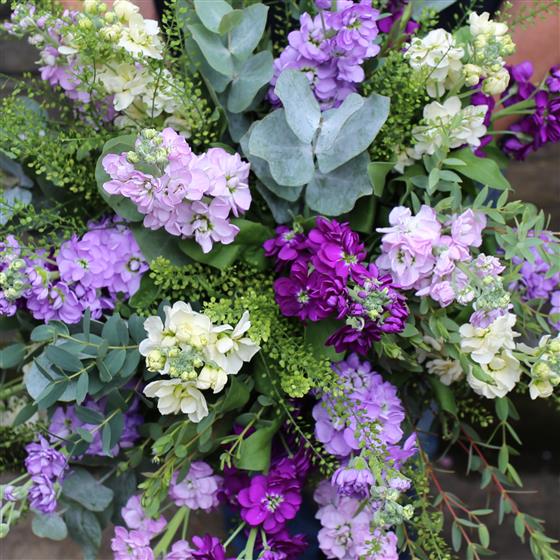 A hand tied of highly scented stocks and aromatic foliages.